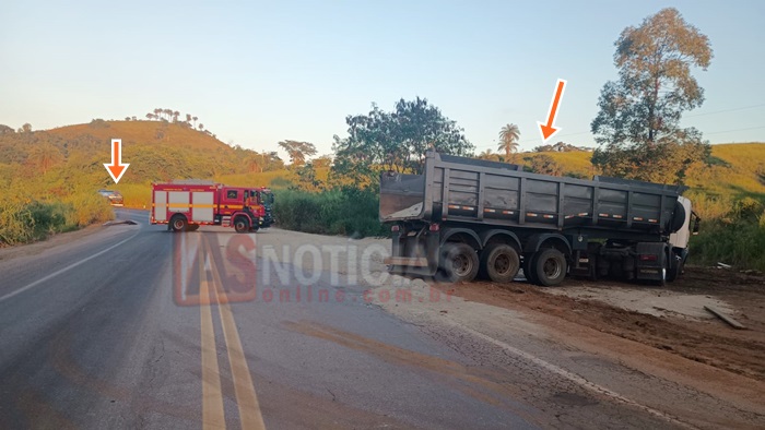 SÃO GONÇALO DO RIO ABAIXO (MG)- Na tarde desta terça-feira, 7 de abril de 2026, um grave acidente envolvendo dois caminhões, sendo um deles um veículo-tanque carregado com combustíveis, interditou completamente a rodovia MG-434, no km 15, nas proximidades do trevo de acesso ao distrito de Ipoema. Grande quantidade de combustível foi derramada na pista.