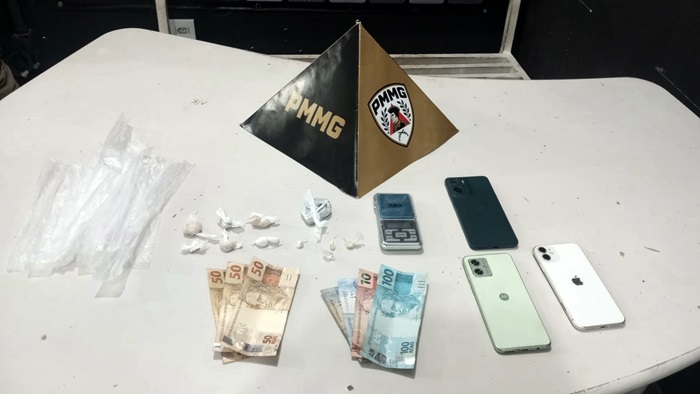 Também foram apreendidos R$ 264 em dinheiro e três aparelhos celulares. Ao todo, a ocorrência resultou na apreensão de uma porção de cocaína, uma bucha de maconha, quatro porções e seis pedras de substância semelhante ao crack, além dos demais materiais.