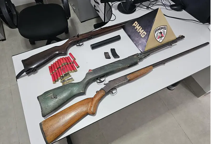 A Polícia Militar de Minas Gerais (PMMG), por meio dos militares do do Grupo Especial de Policiamento Ambiental – GEPAM, do Batalhão de Polícia Militar de Meio Ambiente, realizou uma operação policial na zona rural dos municípios de Brasilândia de Minas e João Pinheiro. Nessa sexta-feira (10), foi apreendida uma espingarda calibre 28 (Rossi), um rifle calibre .22 (CBC), um rifle calibre .22 (adaptado), 21 munições calibre .22, 20 munições calibre 28, dois carregadores calibres .22, um silenciador, 40,180 kg de pirá (espécie cuja pesca é proibida), um surubim (2,978 kg) em tamanho inferior ao permitido e um dourado (1,694 kg) em tamanho inferior ao permitido.