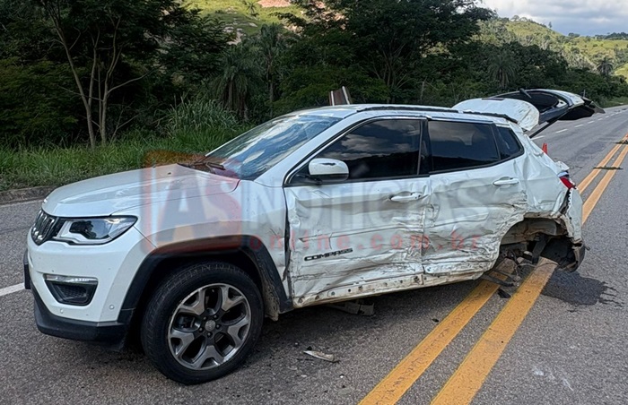 Com o impacto, o Jeep Compass capotou diversas vezes na pista, parando posteriormente sobre as rodas. No veículo estavam três ocupantes: o condutor, de 38 anos, sua esposa, de 34 anos, e o filho do casal, de 6 anos. Apesar da gravidade do acidente, não houve feridos graves. A mulher e a criança foram encaminhadas ao hospital de Santa Maria de Itabira por estarem abaladas emocionalmente.