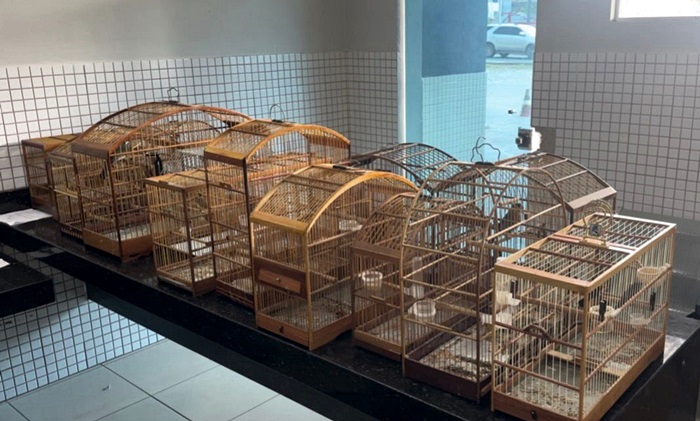 Em um imóvel ligado aos autores, os policiais encontraram diversas aves da fauna silvestre brasileira mantidas em cativeiro, sem autorização legal. Em apoio da Polícia Militar de Meio Ambiente, foram apreendidos 15 pássaros de diferentes espécies e 14 gaiolas.
