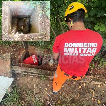 in Polícia Bombeiros resgatam capivaras presas em estação de tratamento de esgoto no Laboreaux às margens da MGC-120 em Itabira