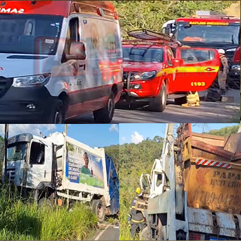 Colisão entre caminhões deixa motorista ferido na estrada da Serra, próximo ao aterro sanitário em Itabira