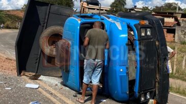 in Polícia Caminhão carregado com terra tomba na avenida Li Guerra no final do bairro Praia em Itabira