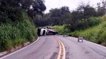 in Polícia Estrada do Forninho LMG-779 fica interditada após tombamento de caminhão carregado com pias de cozinha