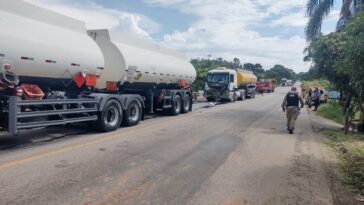 in Polícia Colisão entre duas carretas de combustíveis na rodovia MG-129 deixou o trânsito parado nos dois sentidos em Itabira