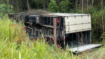 in Política Condutor é socorrido depois de tombar carreta e tem carga saqueada na rodovia MG-434 em Bom Jesus do Amparo